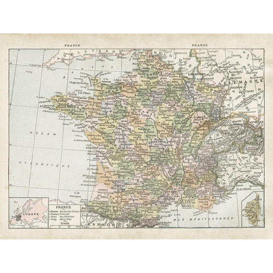France Map Gold Ornate Wood Framed Art Print with Double Matting by Babbitt, Gwendolyn