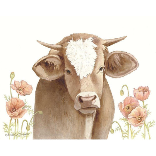 Poppy Cow Gold Ornate Wood Framed Art Print with Double Matting by Babbitt, Gwendolyn
