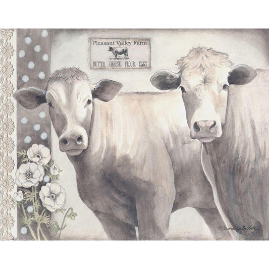 Two Cream Cows Gold Ornate Wood Framed Art Print with Double Matting by Babbitt, Gwendolyn