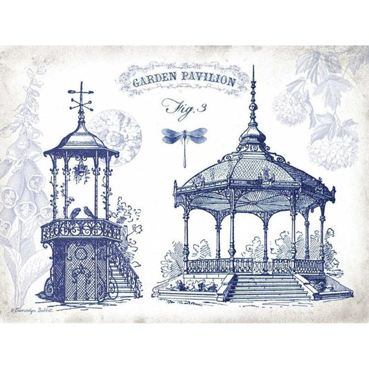 Garden Pavilions Indigo Gold Ornate Wood Framed Art Print with Double Matting by Babbitt, Gwendolyn