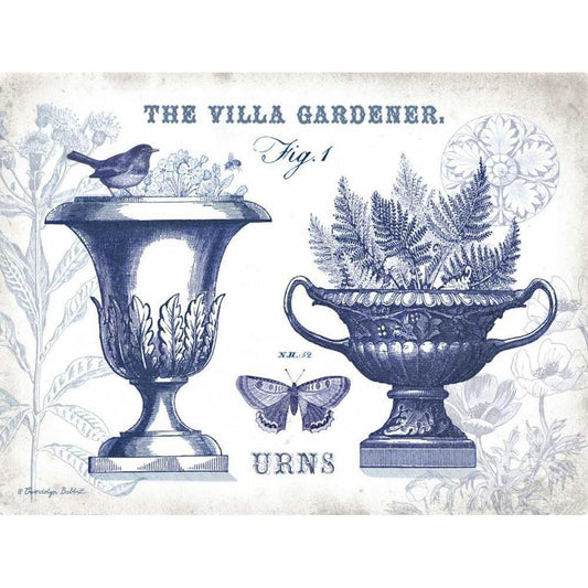 Garden Urns Indigo Gold Ornate Wood Framed Art Print with Double Matting by Babbitt, Gwendolyn