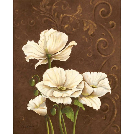 Moonlight Poppies I Gold Ornate Wood Framed Art Print with Double Matting by Adams, J.