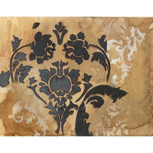 Black Damask Gold Ornate Wood Framed Art Print with Double Matting by Adkin, Arielle
