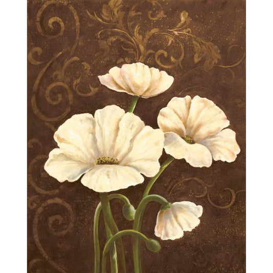 Moonlight Poppies II Gold Ornate Wood Framed Art Print with Double Matting by Adams, J.