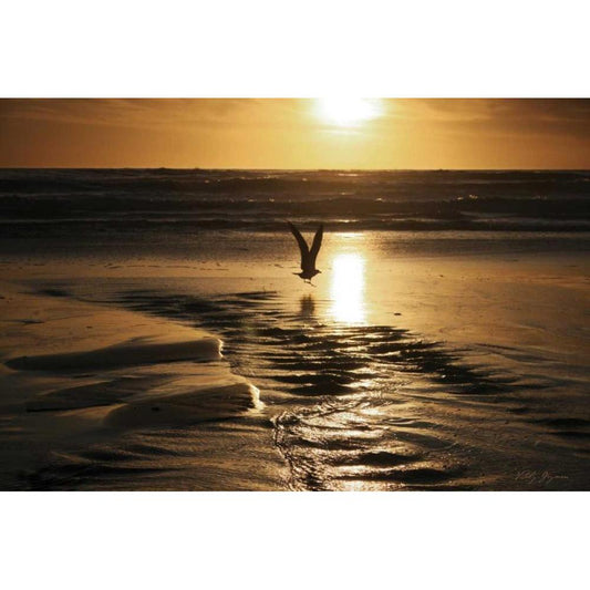 Sunset Bird Gold Ornate Wood Framed Art Print with Double Matting by Geyman, Vitaly