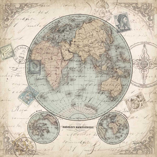 World Hemispheres landscape Gold Ornate Wood Framed Art Print with Double Matting by Tre Sorelle Studios