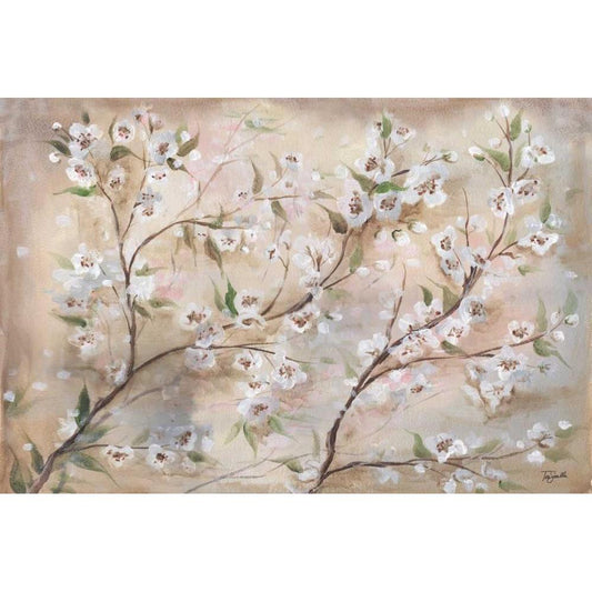Cherry Blossoms Taupe Landscape Gold Ornate Wood Framed Art Print with Double Matting by Tre Sorelle Studios