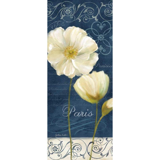 Paris Poppies Navy Blue Panel I Gold Ornate Wood Framed Art Print with Double Matting by Coulter, Cynthia
