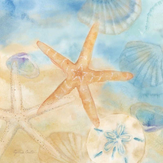 Watercolor Shells I Gold Ornate Wood Framed Art Print with Double Matting by Coulter, Cynthia