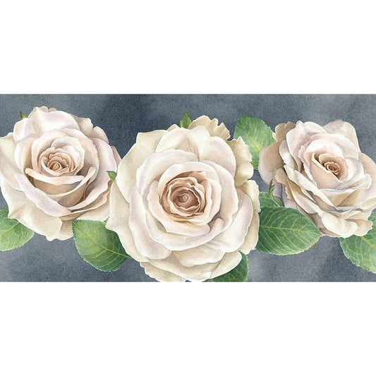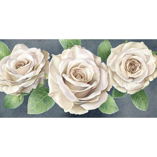 Ivory Roses on gray panel II Gold Ornate Wood Framed Art Print with Double Matting by Wilson, Kelsey