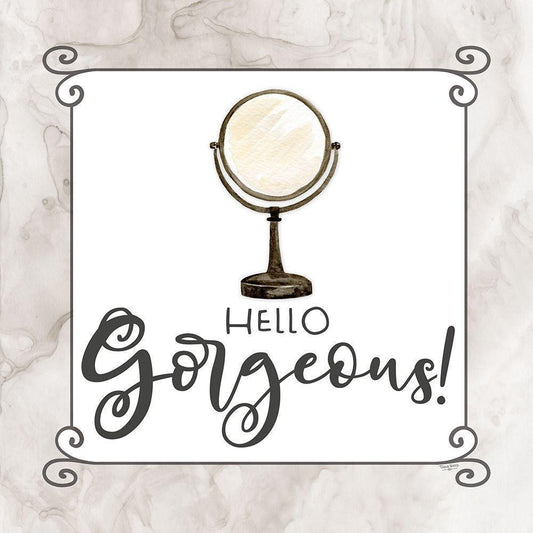 Bath Humor Hello Gorgeous Gold Ornate Wood Framed Art Print with Double Matting by Reed, Tara