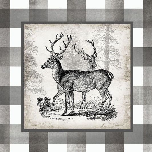 Buffalo Check Deer Neutral II Gold Ornate Wood Framed Art Print with Double Matting by Tre Sorelle Studios