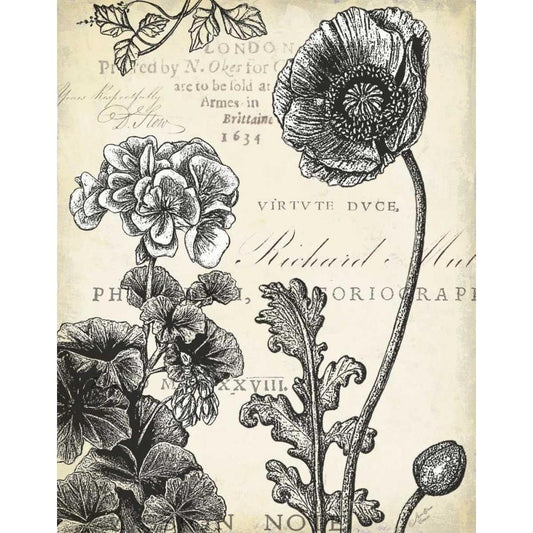 Pen and Ink Floral Study I Gold Ornate Wood Framed Art Print with Double Matting by Cusson, Marie Elaine