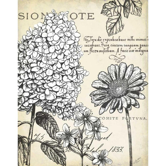 Pen and Ink Floral Study III Gold Ornate Wood Framed Art Print with Double Matting by Cusson, Marie Elaine