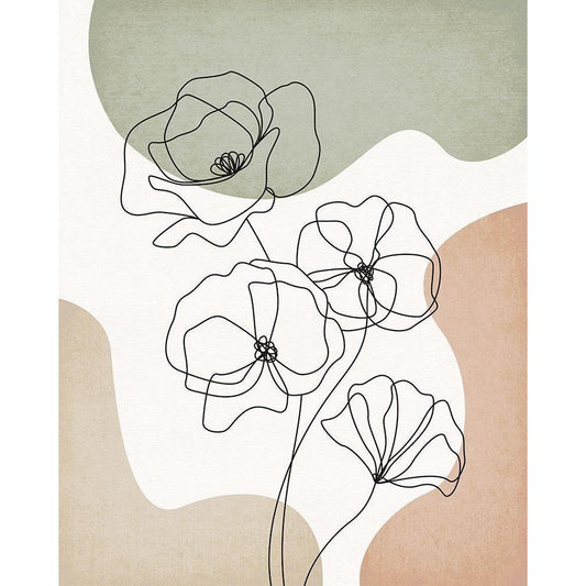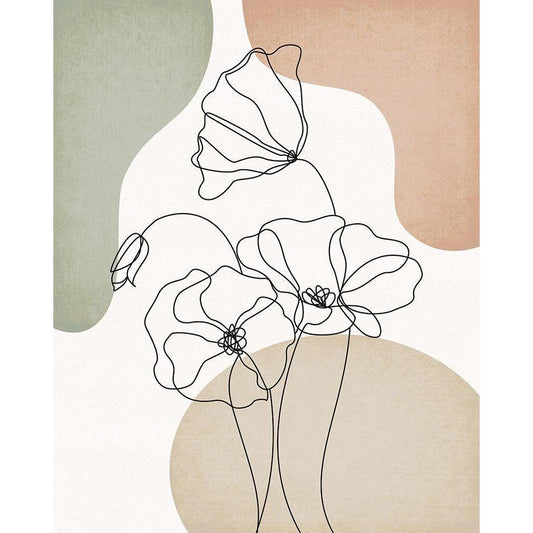 Bold Line Flowers Gold Ornate Wood Framed Art Print with Double Matting by JJ Design