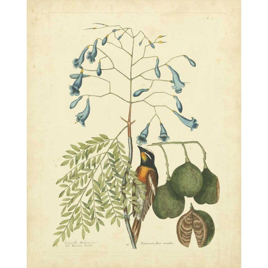 Catesby Bird and Botanical III Gold Ornate Wood Framed Art Print with Double Matting by Catesby, Mark