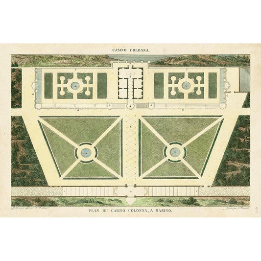 Plan du Casino Colonna, A Marino Gold Ornate Wood Framed Art Print with Double Matting by Bonnard