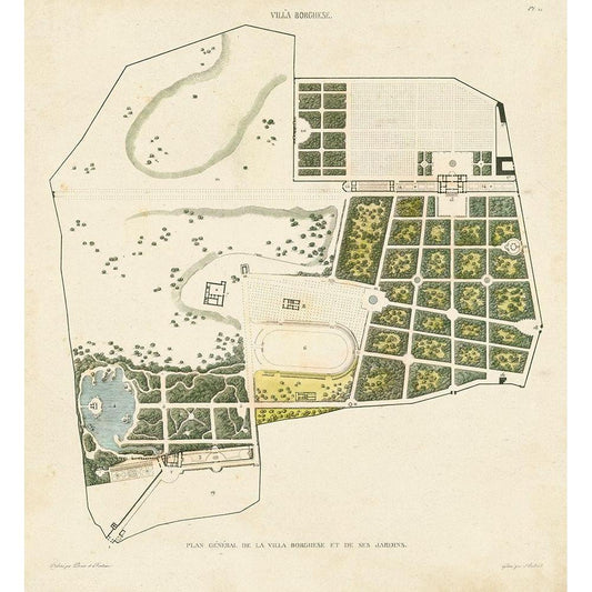 Plan General de la Villa Borghese Gold Ornate Wood Framed Art Print with Double Matting by Baltard