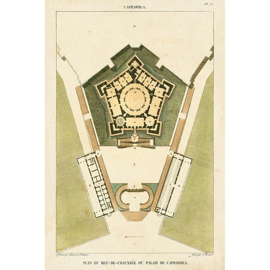 Plan de la Villa di Papa Guilio Gold Ornate Wood Framed Art Print with Double Matting by Bonnard