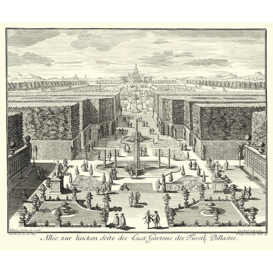 Fountains of Versailles I Gold Ornate Wood Framed Art Print with Double Matting by Decker