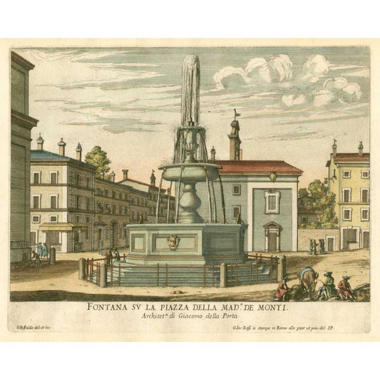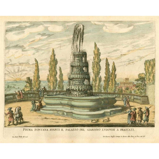 Italian Fountain I Gold Ornate Wood Framed Art Print with Double Matting by Falda