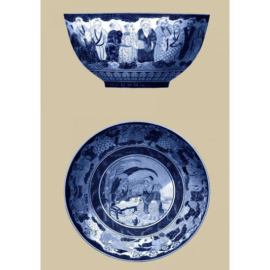 Porcelain in Blue and White I Gold Ornate Wood Framed Art Print with Double Matting by Vision Studio
