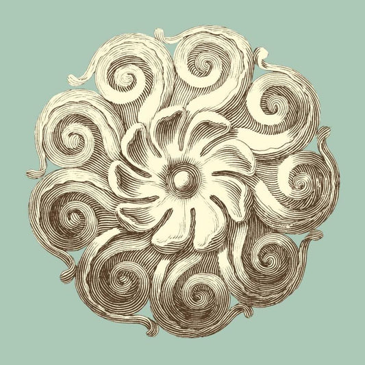 Celadon and Mocha Rosette II Gold Ornate Wood Framed Art Print with Double Matting by Vision Studio