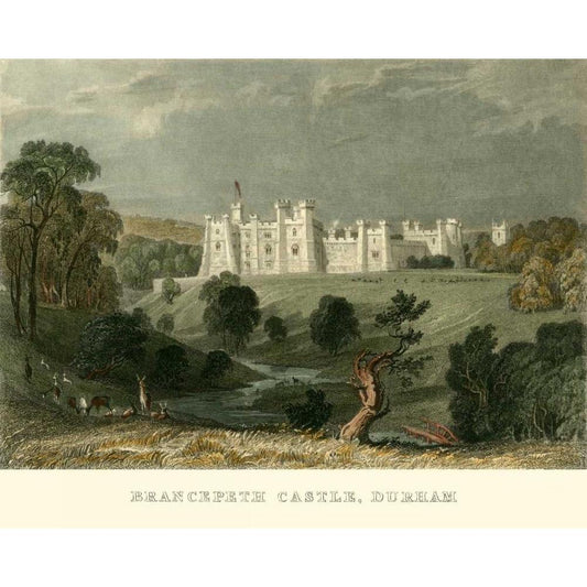 Brancepeth Castle, Durham Gold Ornate Wood Framed Art Print with Double Matting by Allom, T.
