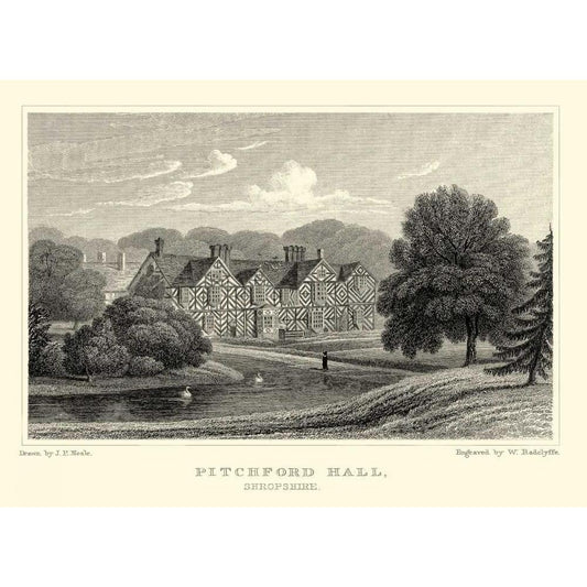Pitchford Hall Gold Ornate Wood Framed Art Print with Double Matting by Neale, J.P.