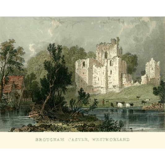 Brougham Castle, Westmoreland Gold Ornate Wood Framed Art Print with Double Matting by Allom, T.