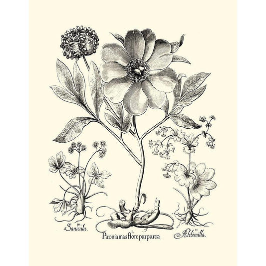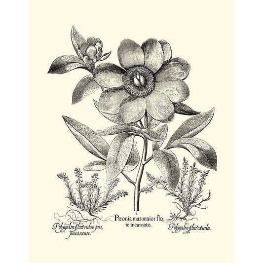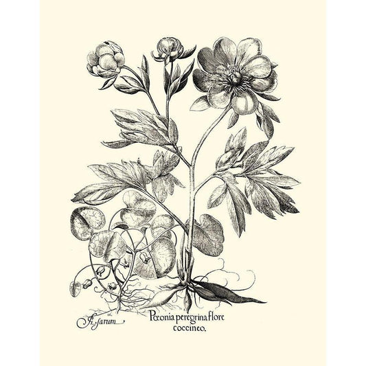 Black and White Besler Peony I Gold Ornate Wood Framed Art Print with Double Matting by Besler, Basilius