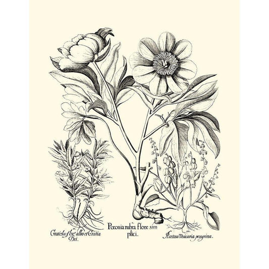 Black and White Besler Peony IV Gold Ornate Wood Framed Art Print with Double Matting by Besler, Basilius