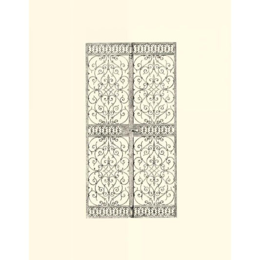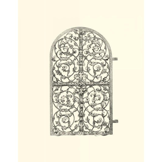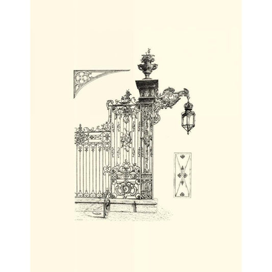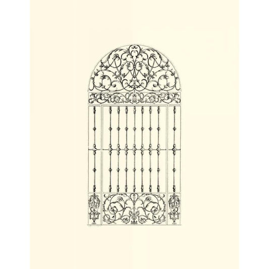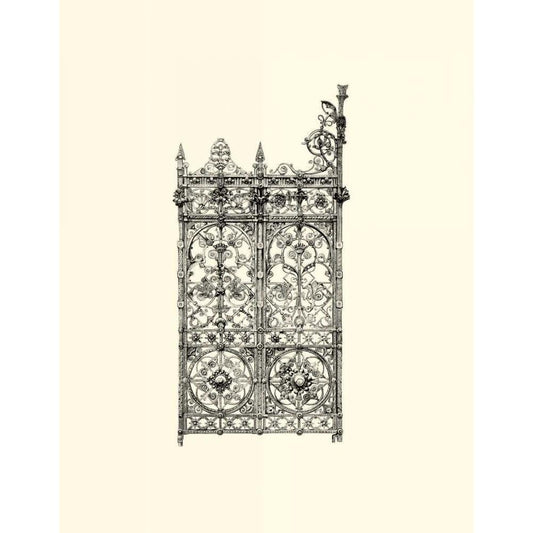 B-W Wrought Iron Gate III Gold Ornate Wood Framed Art Print with Double Matting by Unknown