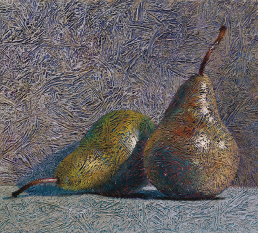 Pair of Pears Black Ornate Wood Framed Art Print with Double Matting by Unknown