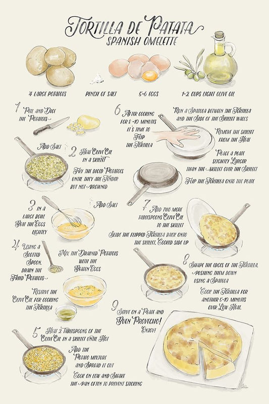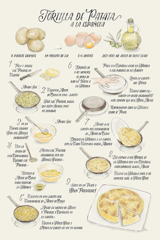 Illustrated recipe of tortilla de patata in Spanish Black Ornate Wood Framed Art Print with Double Matting by Laiz Blursbyai, Rosana