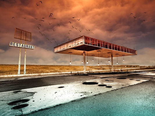 Gaz Bar Blues Black Ornate Wood Framed Art Print with Double Matting by David Senechal Photographie