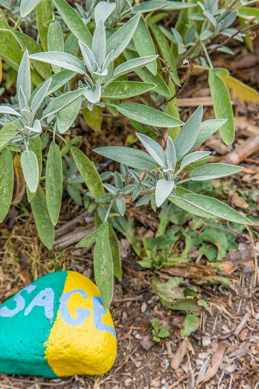 Issaquah-Washington State-USA Sage plant with a painted rock saying sage in an herb garden Black Ornate Wood Framed Art Print with Double Matting by Horton, Janet