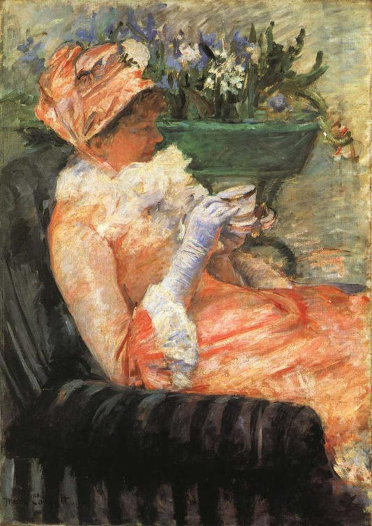 The Cup Of Tea 1879 Black Ornate Wood Framed Art Print with Double Matting by Cassatt, Mary