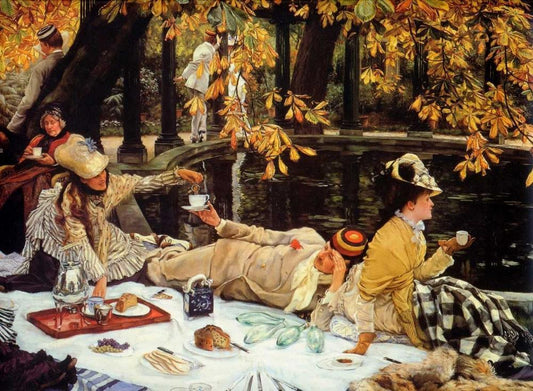 The Picnic Black Ornate Wood Framed Art Print with Double Matting by Tissot, James Jacques
