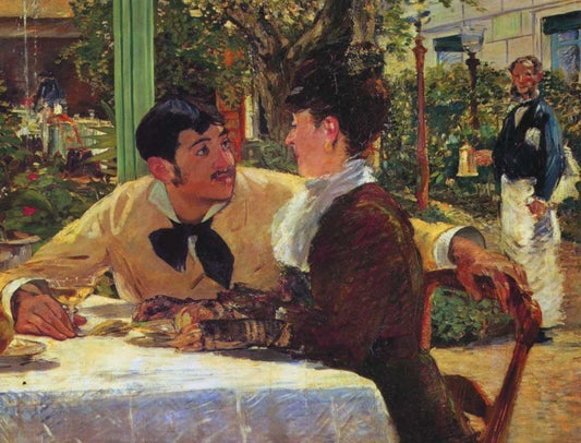 Couple at Pere Lathuille Black Ornate Wood Framed Art Print with Double Matting by Manet, Edouard