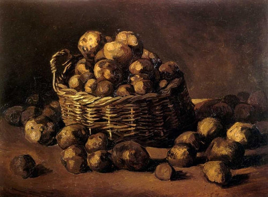 Basket Of Potatoes Black Ornate Wood Framed Art Print with Double Matting by Van Gogh, Vincent