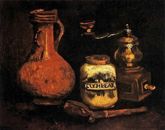 Coffee Mill Pipe Cas Jug Black Ornate Wood Framed Art Print with Double Matting by Van Gogh, Vincent