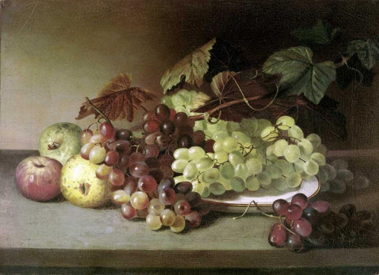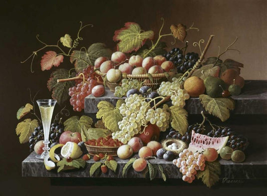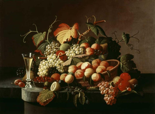 Grapes and Apples Black Ornate Wood Framed Art Print with Double Matting by Peale, James