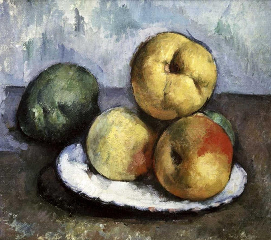 Still Life with Apples and Peaches Black Ornate Wood Framed Art Print with Double Matting by Cezanne, Paul
