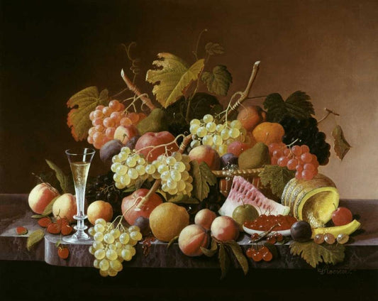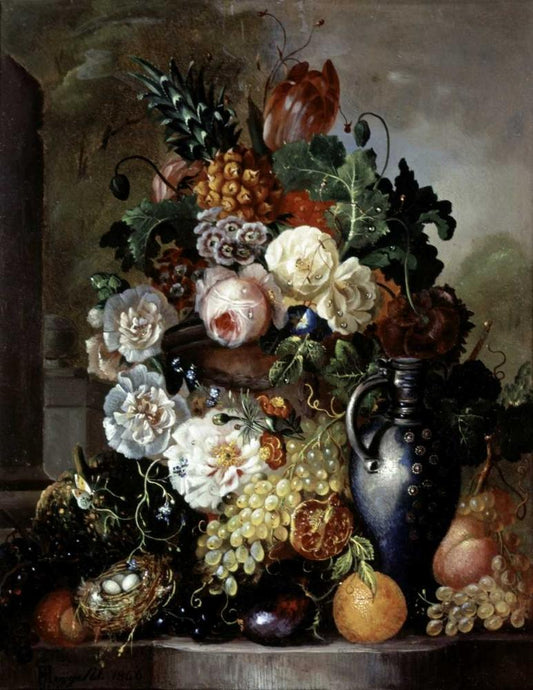 Bountiful Nature Black Ornate Wood Framed Art Print with Double Matting by Roesen, Severin