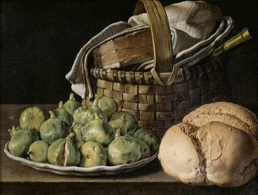 Still Life With Figs Black Ornate Wood Framed Art Print with Double Matting by Melendez, Luis Egidio