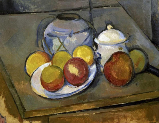 Flawed Vase, Sugar Bowl and Apples Black Ornate Wood Framed Art Print with Double Matting by Cezanne, Paul