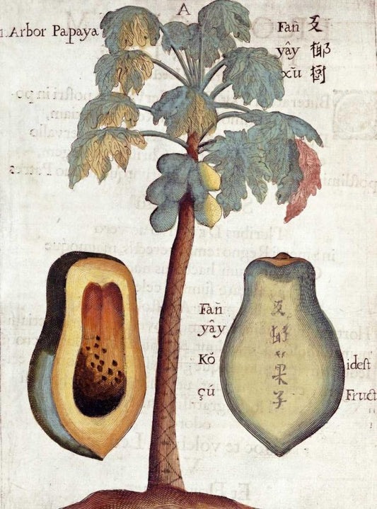Papaya Tree Black Ornate Wood Framed Art Print with Double Matting by Boym, Michael