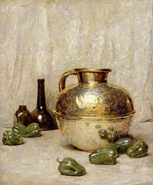 Still Life With Green Peppers and Jug Black Ornate Wood Framed Art Print with Double Matting by Carlsen, Soren Emil