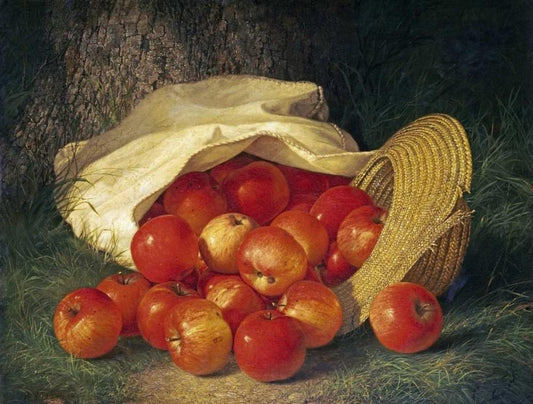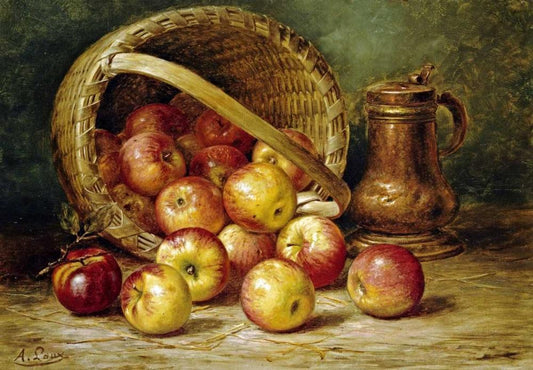 A Basket of Apples Black Ornate Wood Framed Art Print with Double Matting by Laux, August